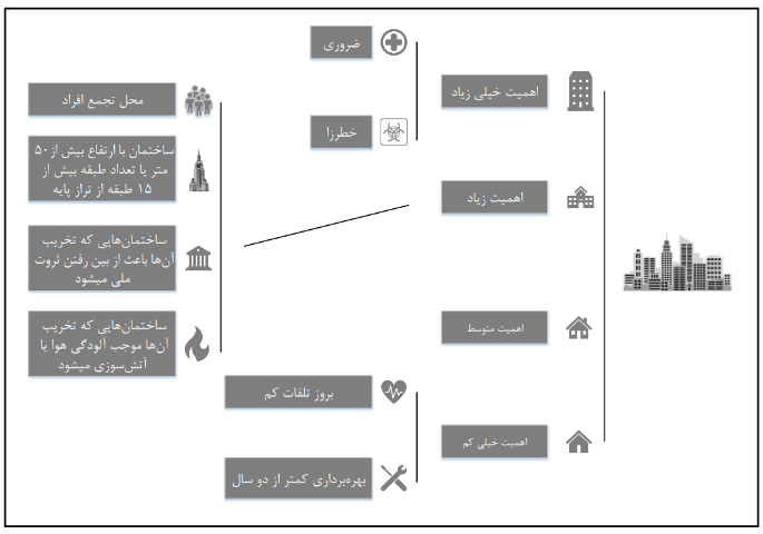 شکل ۱ – گروه بندی ساختمان ها از لحاظ اهمیت