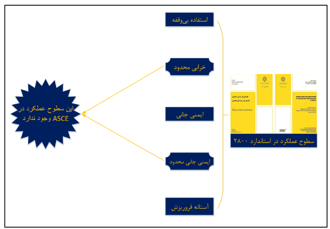 سطوح عملکرد ۲ و ۴ در استاندارد ۲۸۰۰ با استاندارد ASCE متفاوت هستند و این دو سطح عملکرد در ASCE تعریف نشده‌اند.